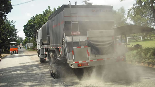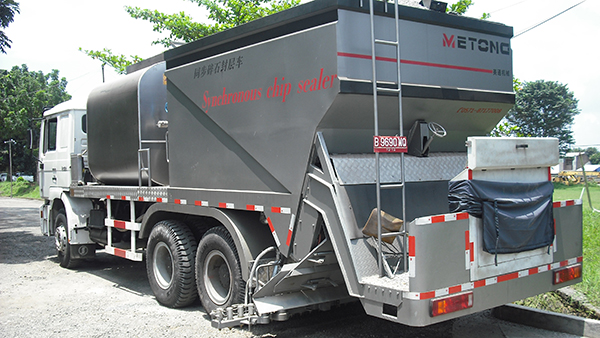 Extendedora de selos é desenvolvido por Metong em conformidade com as normas internacionais. É amplamente utilizada na construção de estradas. Pode polvorizar asfalto e agregar simultaneamente e como bem polvorizar separadamente. As estradas construídas pelo aferidor chip síncrono tem as vantagens de redução de custos, resistência ao desgaste e evita o deslizamento da superfície da estrada, e habilidade à prova de água. O fluxo de tráfego é recuperado logo após a conclusão de qualquer construção de estradas e é apropriado para a construção de diversos graus de estradas