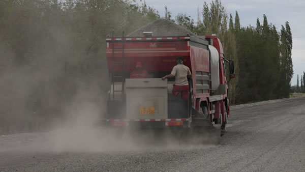 LMT5311TFC Distribuidor de Asfalto Síncrono em local de construção na província Sinkiang, na China