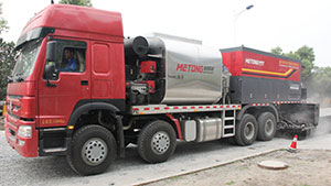 Caminhão de micro revestimento e vedação de lama é um tipo de equipamento para mistura e pavimentação a frio. Os materiais usados são emulsão modificada, agregados, água e outros aditivos devidamente proporcionados, misturados e pavimentados numa estrada existente que será reparada.